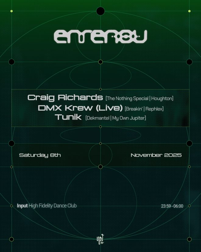 Para celebrar este nuevo comienzo, enrenou artists presentará su primer showcase este sábado 8 de noviembreen Input High Fidelity Dance Club (Barcelona), junto a Craig Richards (The Nothing Special / Houghton), DMX Krew (Live) (Breakin’ / Rephlex) y Tunik (Dekmantel / My Own Jupiter).