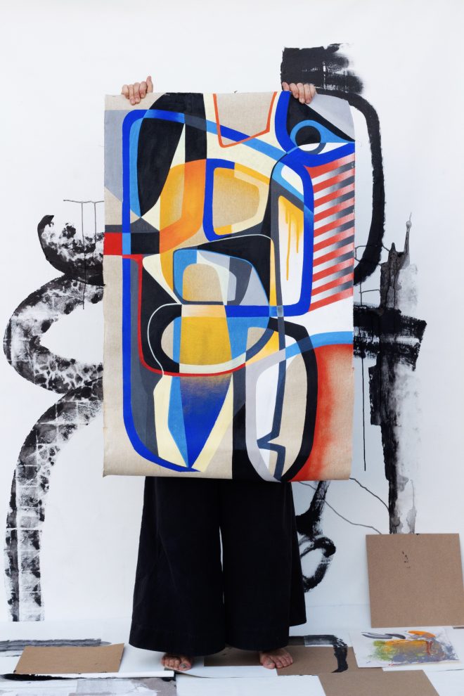 Tus piezas son abstractas pero transmiten un universo muy cargado de emoción y simbolismo. ¿Cómo encontraste tu propio lenguaje en los lienzos?