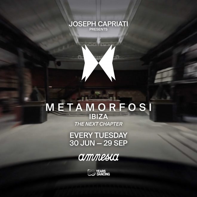 Este verano, Metamorfosi regresa a Amnesia con una residencia de 14 fechas consecutivas, todos los martes desde el 30 de junio hasta el 29 de septiembre, convirtiéndose en la residencia más extensa de Joseph Capriati en el club. Un regreso que marca una nueva etapa para el proyecto y que coincide con el 50º aniversario de Amnesia, un año que celebra medio siglo defendiendo algo que no se puede programar: la conexión auténtica entre música y personas.